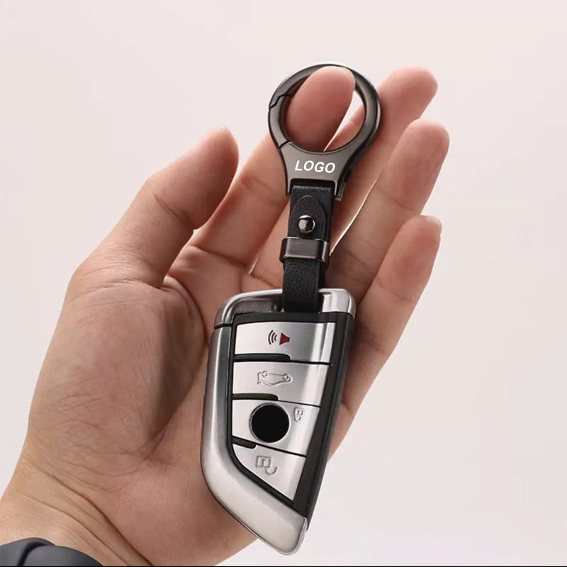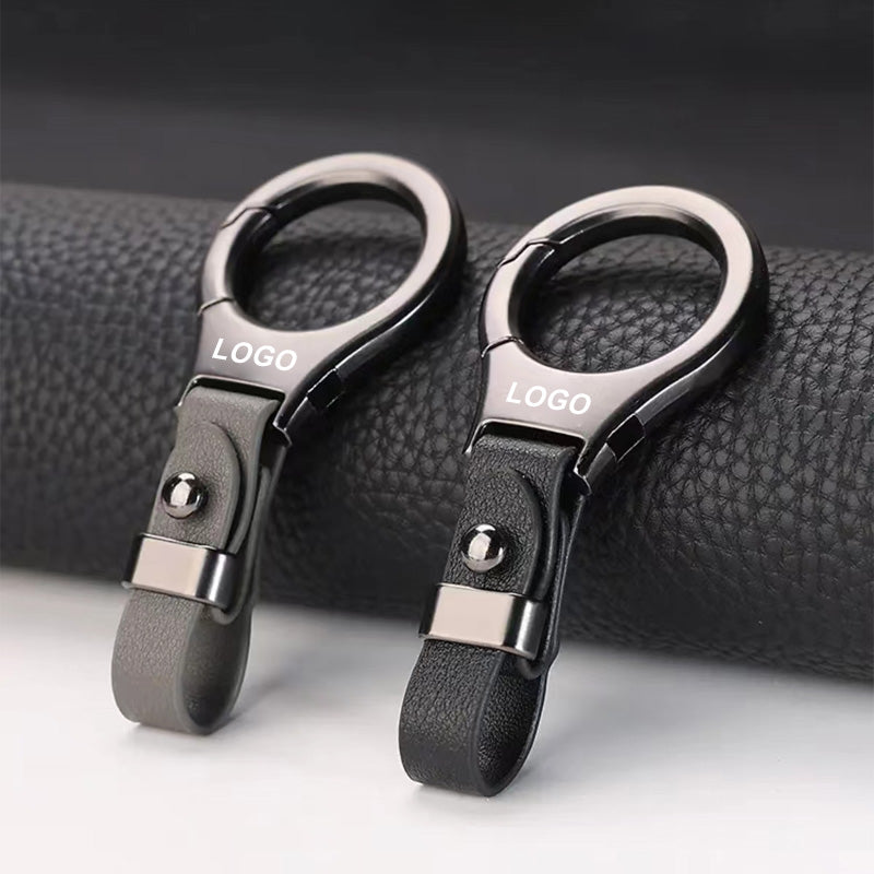 Solid färg metall läder bil nyckelring